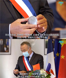 在市政厅举办的授奖仪式上,瓦德勒伊市市长佳美先生把侯董称作 “真正的朋友”,亲自为其颁发了镌刻有“法兰西共和国”的勋章,全场以热烈的掌声,对于侯董敢于付诸行动,以伟大友谊帮助瓦德勒伊市人民的这份情谊,表达了至高敬意。侯董始终秉持“诚信立业 感恩立行”的理念,怀着感恩之心回馈行业和社会。这枚来自法国的勋章,将铭刻这一段美丽的历史,共建中法人民美好国际友谊。