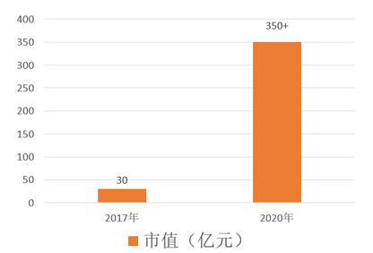 市值30亿左右——截止发布当天350亿+,呈十几倍增长。