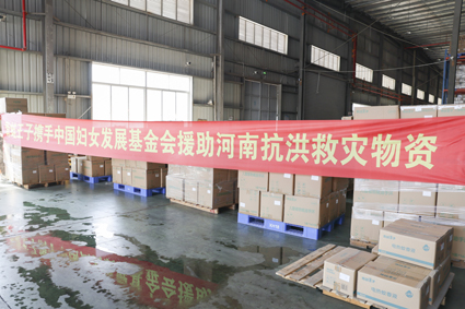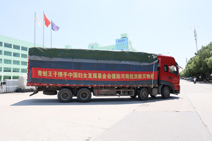 7月21日,青蛙王子集团携手中国妇女发展基金会捐赠价值110万元抑菌及防护类物资用于河南省防汛救灾,保障灾情发生地区妇女儿童及家庭健康。