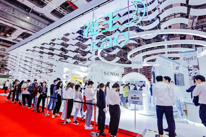 走进花王的“未来生活”版块,集团最高端化妆品品牌“SENSAI丝光溢彩”的展示区域无疑是此次花王展台的一大亮点。首次在进博会上与中国消费者见面的“SENSAI丝光溢彩”展示区域特别设置了雅致的日式茶室,在静心的氛围中将日式细腻美学与尖端技术相融合的护肤美妆理念传递给每位体验者。进入茶室后,体验者在工作人员采用的“saho”护肤手法下,试用了“SENSAI丝光溢彩”的高端护肤品和美妆产品,真实感受从“小石丸蚕丝”中提取的精华给肌肤带来的由内而外的细腻改变。