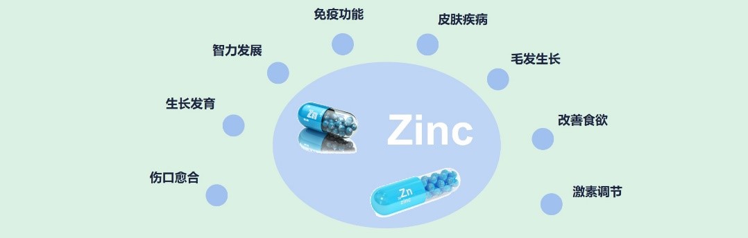 锌(Zn)是人体必需的微量元素,广泛分布于生命体各个组织,皮肤是体内锌含量第三高的组织(约占身体总含量的5%)。作为1000多个酶促反应和2000多个转录因子的辅助因子,锌广泛参与核酸、蛋白质的合成、细胞的分化和增殖等生理活动,在皮肤疾病、免疫功能、伤口愈合、生长发育、毛发生长等方面有重要作用。