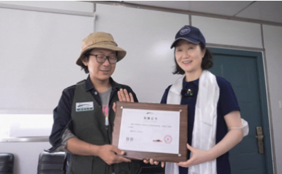 左一孙浩接受捐赠 右一拜尔斯道夫东北亚董事总经理薛薇