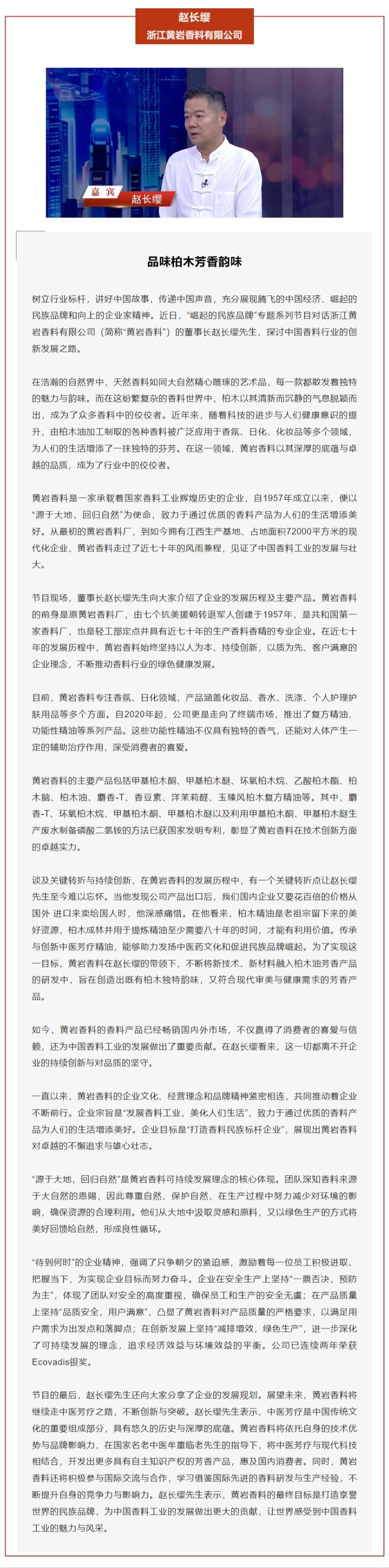 浙江黄岩香料董事长赵长缨:品味柏木芳香韵味