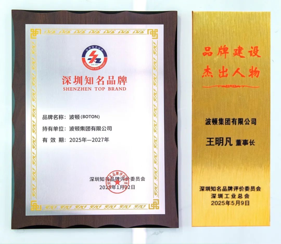 2025年5月9日,第九届“深圳(湾区)国际品牌周”暨2025年中国品牌日·深圳地方特色活动开幕大会在深圳广电大厦隆重举行。波顿集团旗下品牌“波顿(BOTON)”凭借其卓越的市场表现和良好的社会声誉,再次荣获“深圳知名品牌”称号;全国政协委员、中国波顿集团董事长兼总裁王明凡先生被授予“深圳知名品牌·品牌建设杰出人物”奖;同时,波顿集团被认定为“深圳(湾区)知名品牌——品牌建设优秀企业”。