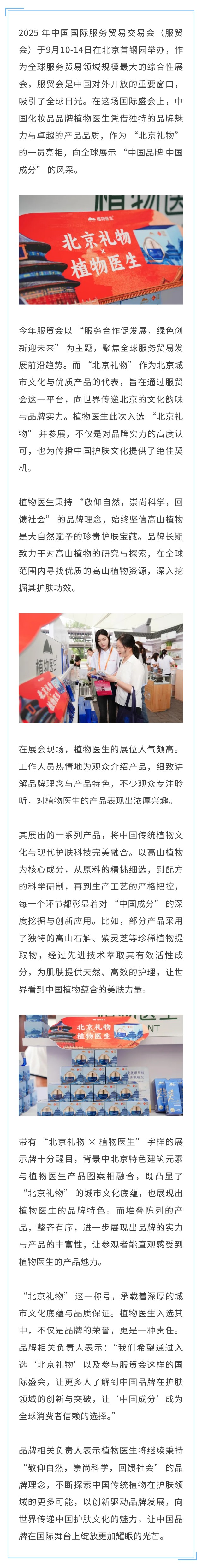 植物医生入选“北京礼物”亮相服贸会 诠释 “中国品牌 中国成分”