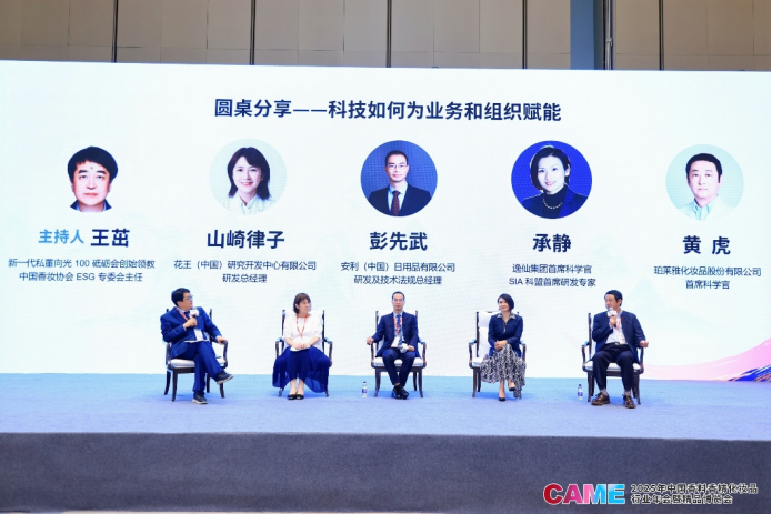 随后进行的圆桌分享环节,以“科技如何为业务和组织赋能”为主题,将科技议题推向新的高度。安利(中国)研发及技术法规总经理彭先武、广州芬豪香精有限公司董事长廖经飞、逸仙集团首席科学官承静、花王(中国)研究开发中心有限公司研发总经理山崎律子、珀莱雅化妆品股份有限公司首席科学官黄虎等嘉宾,从原料创新、研发体系数字化、智能制造、开放式创新等不同角度,分享了科技在提升产品力、优化用户体验、赋能供应链、激发组织创新活力等方面的具体实践与前沿思考,一致认为持续加码科技投入、构建敏捷高效的研发与技术应用体系,是企业应对未来挑战、赢得市场竞争的不二法门。
