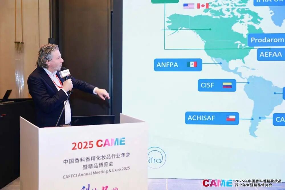 国际日用香料协会(IFRA)主席Alexander Mohr和执行总监Sven Ballschmiede分享了《2025年IFRA-IOFI可持续发展报告》,剖析报告中的关键进展与丰硕成果,展示IFRA-IOFI可持续发展章程签署方在兑现章程承诺方面所取得的最新进展,彰显了行业共赴可持续未来的决心。随后,两位为此次加入IFRA-IOFI联合可持续章程的中国企业代表:瀛海(沧州)香料有限公司CEO朱晨、格林生物科技股份有限公司副总经理胡建良、波顿香料股份有限公司总经理助理王越、焦作市馨之源科技有限公司业务经理李蕾颁发证书。
