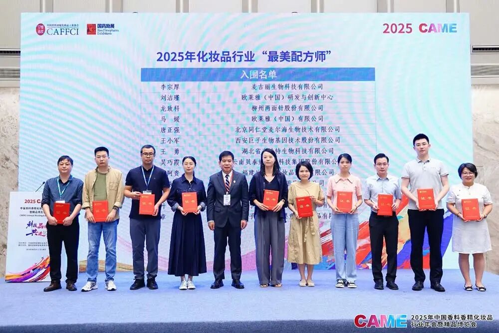 作为中国香妆协会推动行业高质量发展的重要举措,此次评选聚焦化妆品研发核心环节,彰显配方师在产品创新中的关键作用。颁奖仪式上,中国香妆协会顾问董树芬为第一批获奖者颁发荣誉证书。