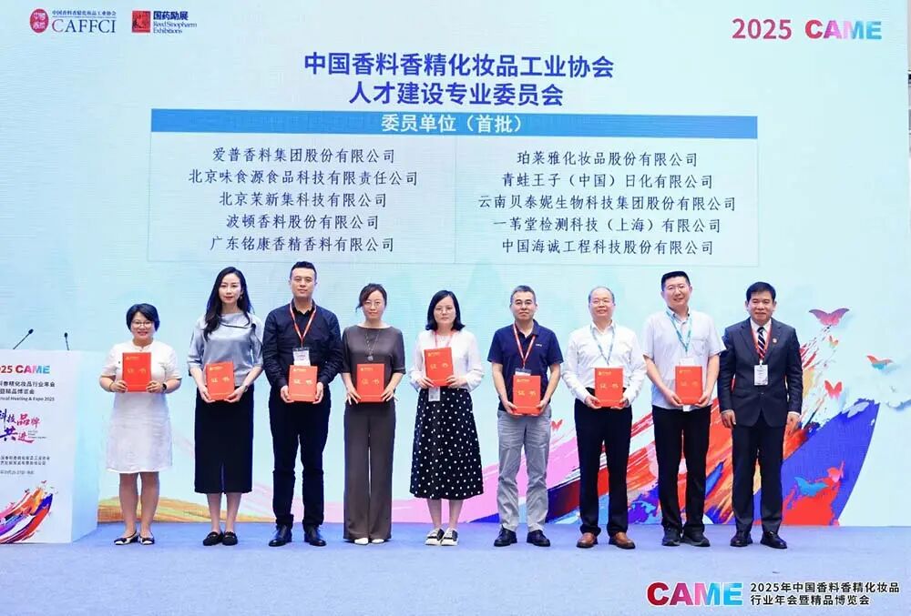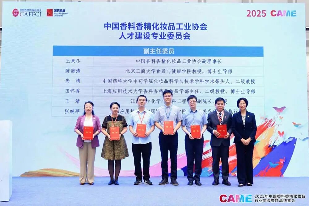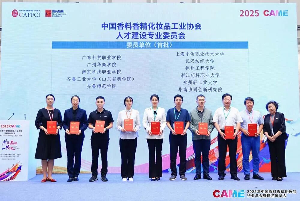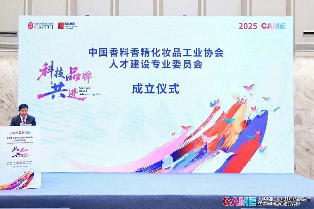 为深入贯彻落实国家人才强国战略和创新驱动发展战略,有力支撑我国香料香精化妆品行业高质量发展,2025年9月27日,中国香料香精化妆品工业协会(以下简称“中国香妆协会”)在江苏省南京市扬子江国际会议中心隆重举行人才建设专业委员会(以下简称“人才专委会”)成立大会。中国香妆协会理事长颜江瑛、副理事长王来冬、顾问董树芬,教育部高等学校轻工类专业教学指导委员会秘书长何有节,以及来自高校、科研院所和行业骨干企业的代表共同出席仪式。