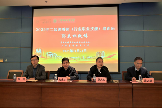 11月24日,由中国香料香精化妆品工业协会(以下简称“中国香妆协会”)主办、上海应用技术大学香料香精化妆品学部承办的2025年二级调香师培训班(总第二期)开班仪式在上海应用技术大学奉贤校区顺利举办。