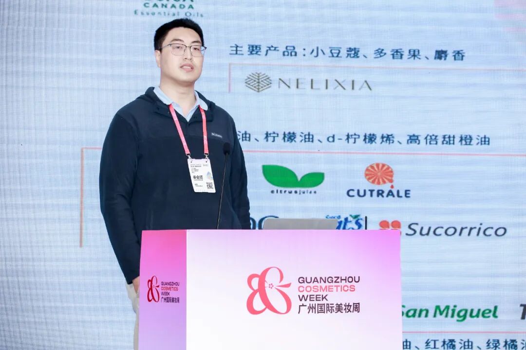 芬畅凝科香精香料有限公司高级调香师徐青先生聚焦本土特色香材,带来《香遇陈皮,解锁岭南新中式——陈皮精油在香水中的运用》的精彩分享。他系统阐释了陈皮油的岭南文化底蕴、独特功效及其在现代调香工艺中的创新应用,为“新中式”香水的创作提供了生动范本。