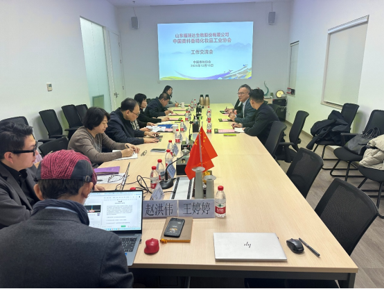 2025年12月18日,山东福瑞达生物股份有限公司(以下简称“福瑞达公司”)董事长高春明、高级经理仲华维,山东化妆品行业协会监事长任少杰等一行三人到访中国香料香精化妆品工业协会(以下简称“中国香妆协会”)开展工作交流,中国香妆协会理事长颜江瑛、副理事长王来冬、顾问董树芬、秘书长穆旻及部门主任参加了座谈交流。